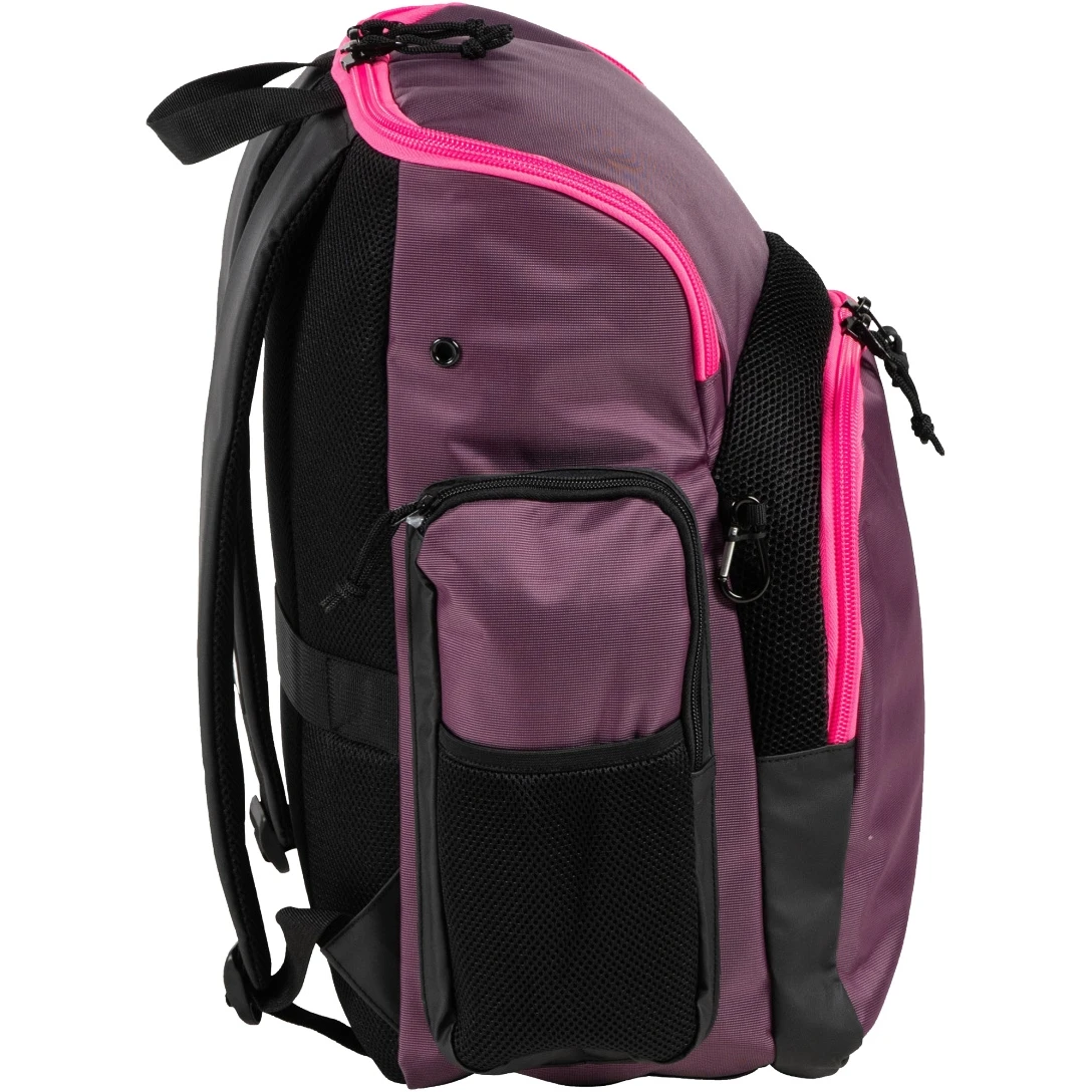 Compact, comfortabel en stijlvol, de arena Spiky III 35L rugzak is ideaal voor zwemtraining, andere sportactiviteiten en vrije tijd. Het ruime hoofdvak, drie extra vakken met rits en zijvakken van gaas bieden veel opbergruimte. Met ademende mesh inzetstukken en waterafstotend materiaal voor optimale vochtregulatie. Het gewatteerde, ademende rugpaneel en de ergonomische riemen zorgen voor een uitstekend comfort. De waterafstotende bodem beschermt de inhoud wanneer deze nat is. Afmetingen: 46cm x 30cm x 23cm, 35L