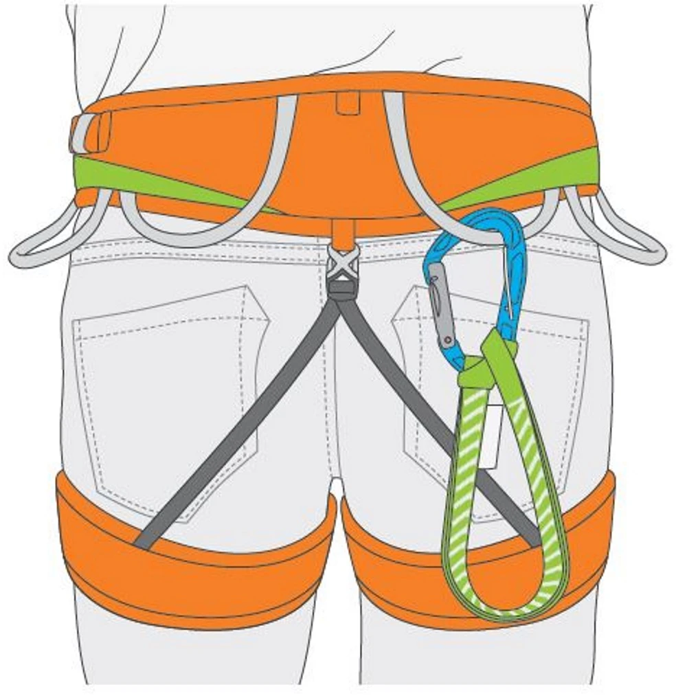 TRICKY kan gemakkelijk aan het harnas worden gedragen dankzij de flexibele lus, waardoor de lengte van het systeem kan worden gehalveerd en ruimte wordt bespaard.