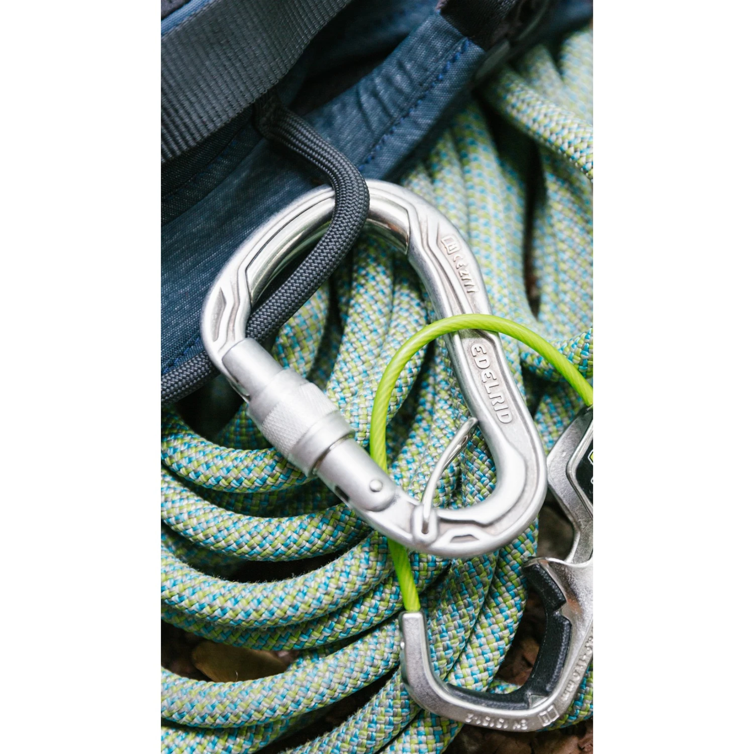 Innovatieve en robuuste HMS karabijnhaak met stalen inzet aan de top en geïntegreerde draadhaak ter bescherming tegen verdraaiing. Ideaal voor gebruik met EDELRID beveiligingstoestellen.