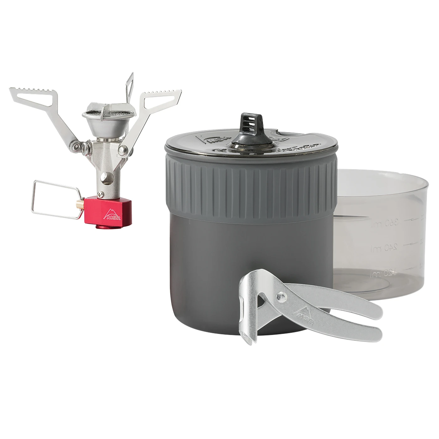 De is de definitie van grote prestaties in een kleine verpakking. Ultracompacte kook- en eetset voor minimalistische solo-hikers. Hij wordt geleverd met de snel kokende PocketRocket 2 kookpan en is perfect om heet water te maken voor een maaltijd in zakjes of een kop koffie. Voor efficiëntie is de pan zowel een eet- als drinktank en heeft ruimte voor een kooktoestel en een 110 g MSR-gaspatroon. De kom past perfect om de pan. Als je een minimale bepakking nodig hebt voor alpiene expedities of lange fietstochten, is deze microkookset wat je zoekt.