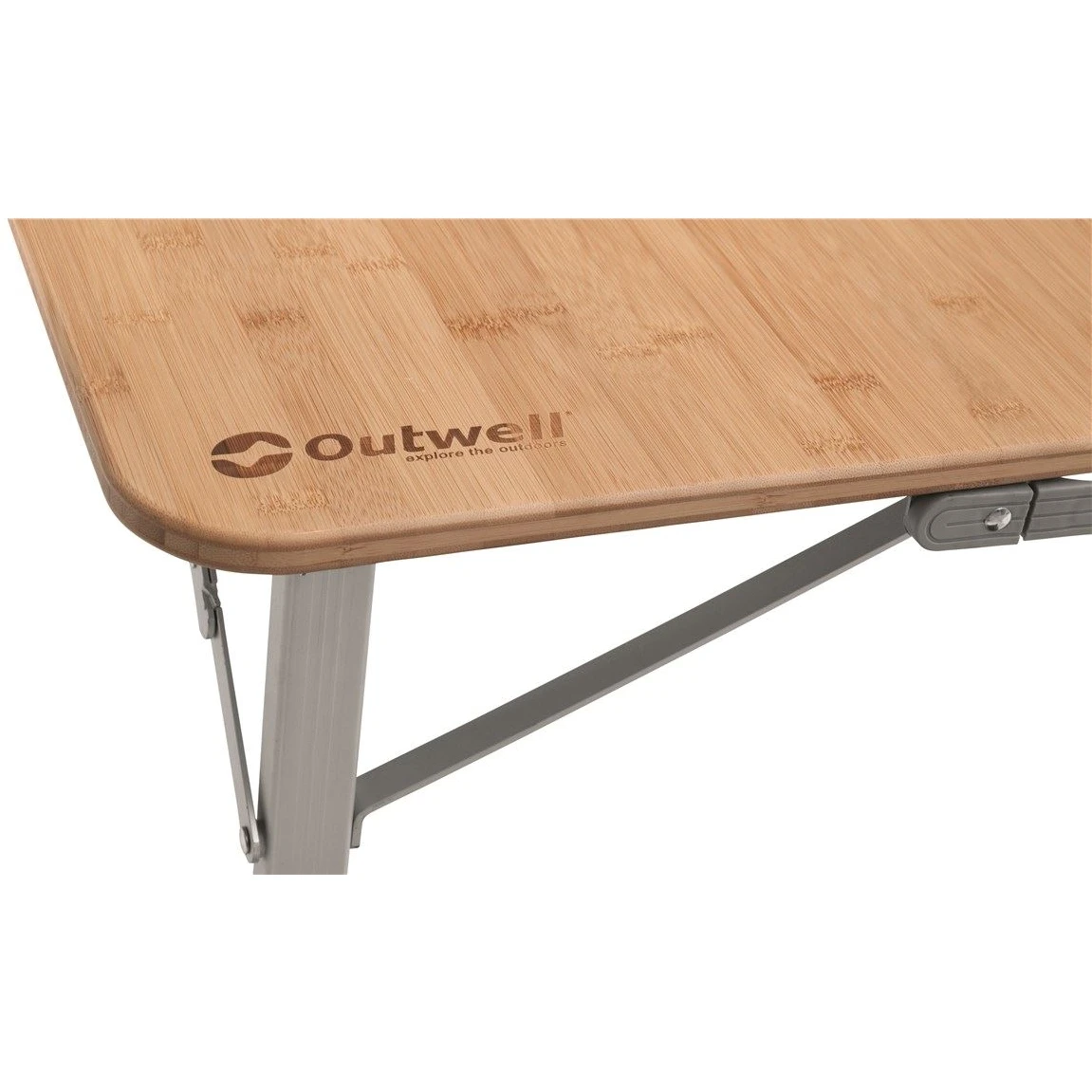Uiterst veerkrachtige klaptafel met stevige aluminium constructie en bamboe tafelblad.