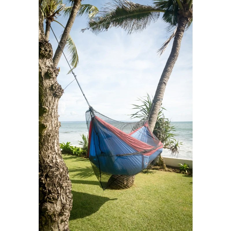 Het muskietennet heeft een dubbele ritssluiting en een extra fijn gaas met 200 openingen per cm2 dat u en uw hangmat volledig bedekt, zodat er geen insect kan binnendringen. Wij hebben dit net met succes getest in gebieden met een hoog risico op malaria, maar wij bevelen daar nog steeds het gebruik van een permethrine-afweermiddel aan. Dit hangmataccessoire is ideaal voor reizigers die zich willen wagen in de gevaarlijkste uithoeken van de wereld, en voor wandelaars en kampeerders in de wildernis: iedereen zal blij zijn met een muggenvrije slaap…